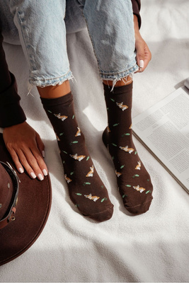 Dámské ponožky s žirafami hnědé