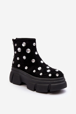 +1Kožené semišové zateplené kotníčková obuv s krystaly D A MR52-205 Černé Botki Damskie