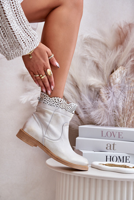 +2Video ukázkaDámské Botky Na Podpatku S Vyřezávaným Vzorem Béžové Lewski 3394/2