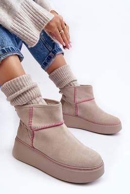 Dámské sněhové boty s zipem vyplněné kožešinou světle béžové Hixe