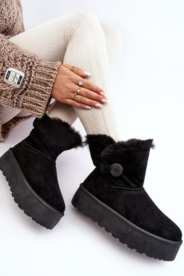 +1Ocieplane Kožené Boty Dámské Na Platformě Černé Lemar Jevette