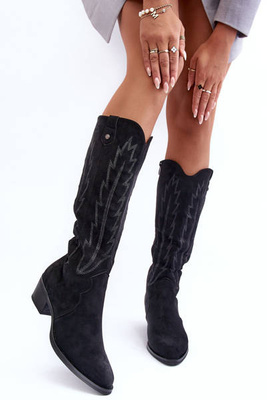Kozáky Na Vysokém Podpatku Z Černého Semiše Amalitas