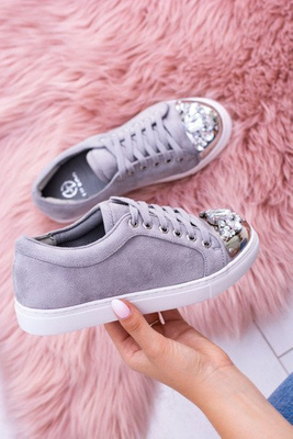 Šedé tenisky Lu Boo s lesklými krystaly