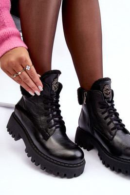 +1Dámské trapperské boty teplé na platformě a plochých podpatcích Big Star MM274340 Černá