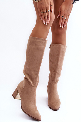Zamszové Botky Na Podpatku Bežové Makeline