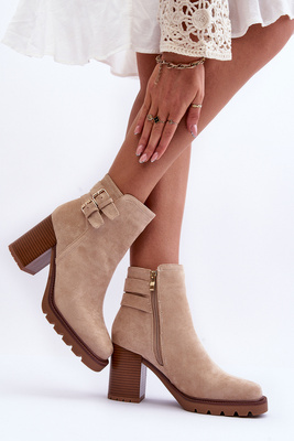 Semišové Prošívané Boty Na Podpatku Bežové Perle