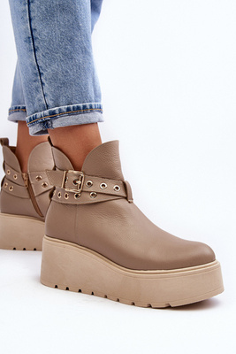 +1Kožené Dámské Boty Na Podpatku Platformy S Pásky Zazoo 1752 Bežové