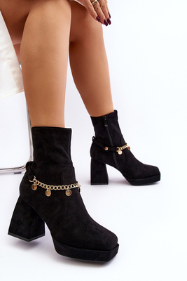 Dámské černé kotníčkové boty na podpatku s řetízkem Tiselo