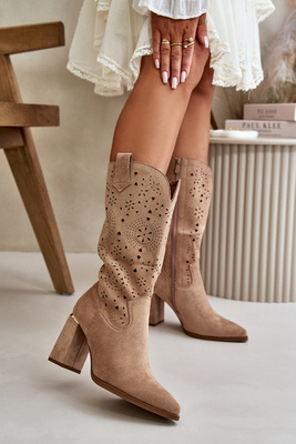Průsvitné dámské botky na podpatku s špičatou špičkou z ekokože tmavě béžové Nevithra