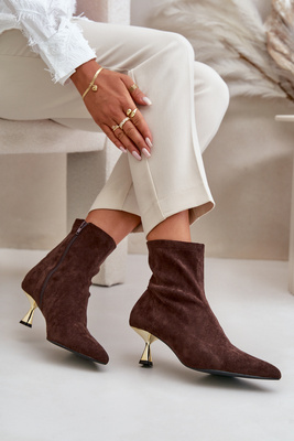 Dámské Botky Na Jehlových Podpatcích Eko Zamšové S Špičatými Nosky Hnědé Irithare