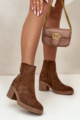 Dámské Boty Na Podpatku Zateplené Eko Semišové Hnědé Arkesia
