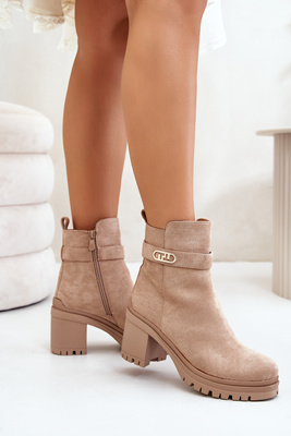 Dámské botky na podpatku eko zamšové zateplené na zip béžové Laonora