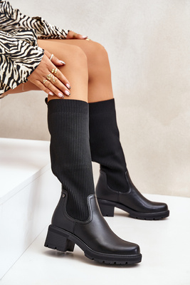 Vkládací kozačky s elastickým svrškem nad koleno černé Vaimi