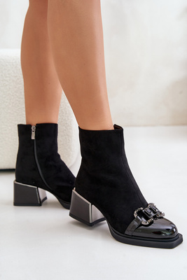 Elegantní dámské boty na podpatku s ozdobou černé MR880-127