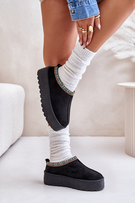 Dámské pantofle na platformě s vyšíváním černé Neroma