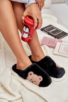Futrové Pantofle Dámské Medvídci Černé Firedi