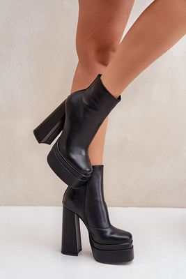 Boty Na Masivní Platformě A Podpatku Zateplené Černé Selahra