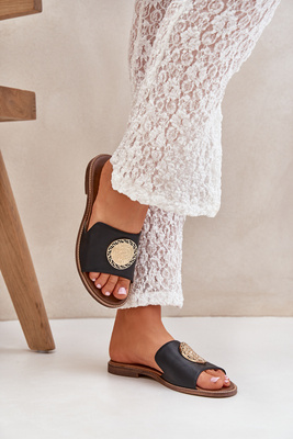 Kožené Pantofle S Dekorací Na Plochém Podpatku Zazoo 3047/O Černé