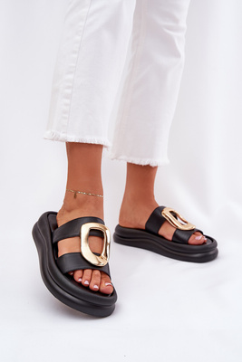 Dámské Pantofle Na Platformě Se Zlatým Detalem Černé Ularinea