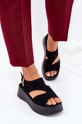 Dámské Sandály Na Platformě Eko Semišové Černé Karonia