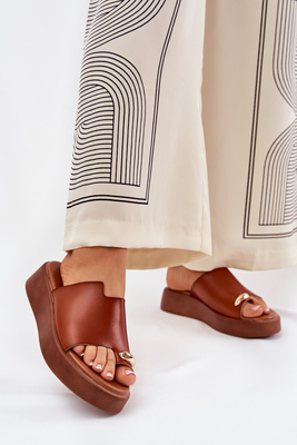 Dámské sandály na platformě a nízkém podpatku s ozdobným detailem Camel Saqesse