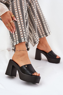 Dámské Pantofle Z Eko Kůže Na Podpatku A Platformě Černé Tamirella