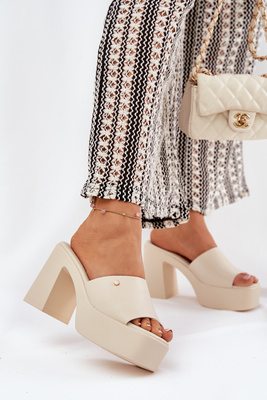 Dámské sandály z eko kůže na podpatku a platformě světle béžové Tamirella