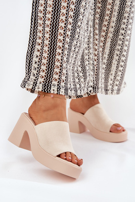 Dámské Sandály Na Podpatku A Platformě Béžové Omeisa