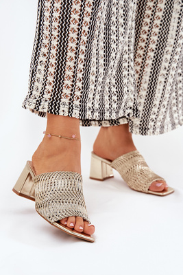 Dámské Pantofle S Pletením Na Podpatku Zlaté Ciariloria