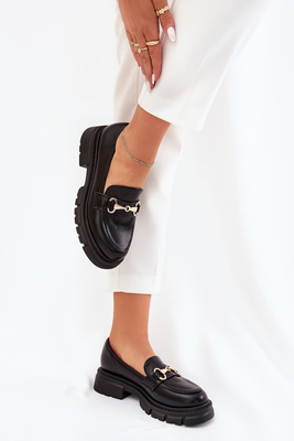 Dámské Mokasíny Se Zlatým Detalem Eko Kůže Černé Gemitha