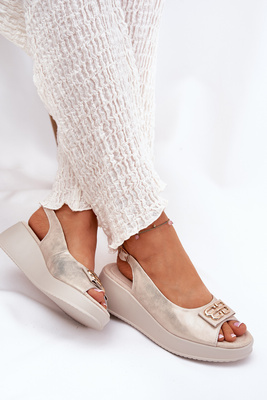 Kožené Dámské Sandály Na Klínu S Ozdobným Detalem S.Barski LR51-593 Zlaté