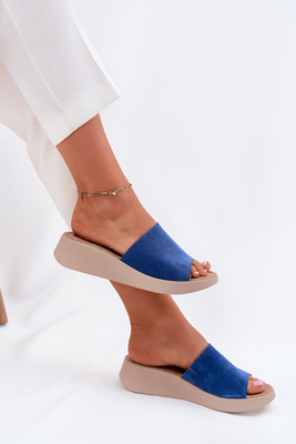 Dámské semišové sandály na klínu Panto Fino Modré RR267041