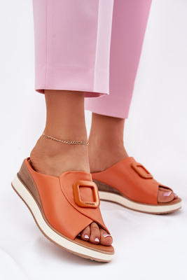 Dámské kožené pantofle na klínu Artiker 56C2149 oranžové