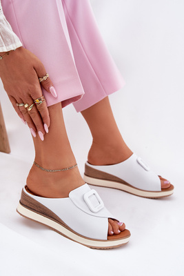 Dámské kožené pantofle na klínu Artiker 56C2149 oranžové