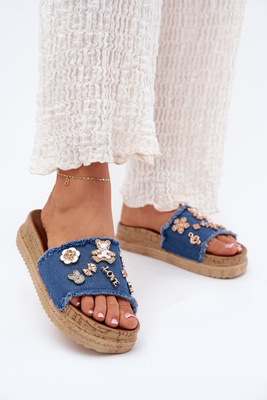 Dámské Pantofle Se Zlatými Doplňky Na Platformě Tmavě Modré Rigasta