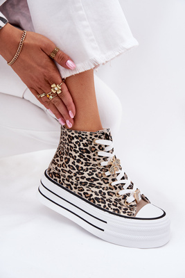 Dámské Tenisky Vysoké Na Masivní Platformě S Připínáčky Leopardí Zlato Olivana