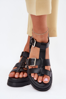 Eko Kožené Sandály Dámské S Přezkami Černé Mireza