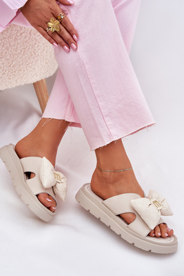 Dámské Kožené Sandály Na Platformě S Mašlí CheBello 4647 Béžové