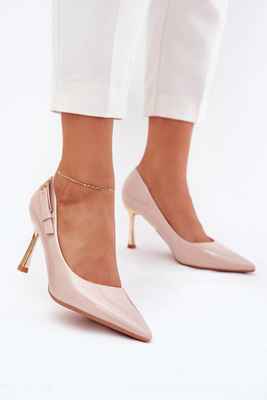 Lakované Lodičky Se Zlatou Sponou Béžové Mivira