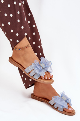 Dámské Pantofle Na Plochém Podpatku S Tylovou Mašlí Džínové Tanira