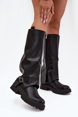 Zateplené kozačky s ohrnutým svrškem a sponou černé Fiorae