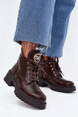 Zateplené dámské botky se zlatým detailem čokoládové Kavirae