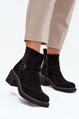 Dámské kotníkové boty na klocku s přezkou černé Nymera