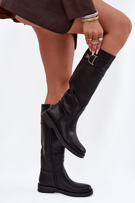 Dámské kozačky na nízkém podpatku s ozdobným detailem černé Arvessa