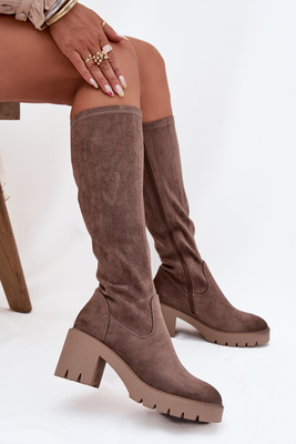Kozaki před koleno eko semiš na sloupku Vinceza 58332 tmavě béžové