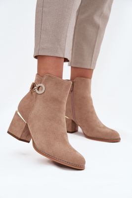 Zateplené dámské kotníkové boty se zlatými detaily na sloupku béžové Dorisse