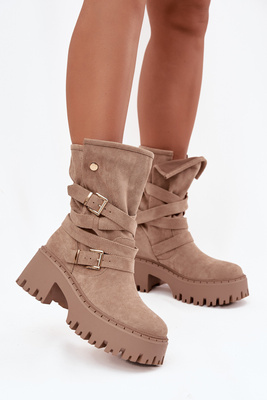 Dámské boty na robustním podpatku s přezkami a páskem béžové Nerelisa