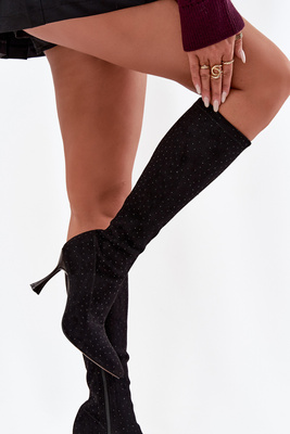 Dámské kozačky na jehlovém podpatku s ozdobou D&A JC52-883 Černé
