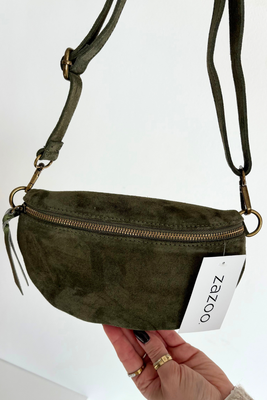 Kožená semišová taška na opasek zelená Wessa