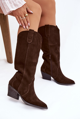 Kožené Semišové Kozačky Dívčí Oteplené Čokoládové Urselle